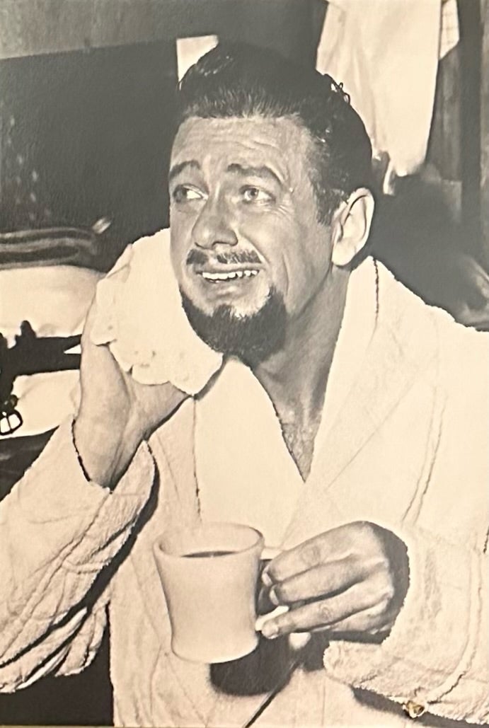 DON, IN REPOSE IN HIS DRESSING ROOM