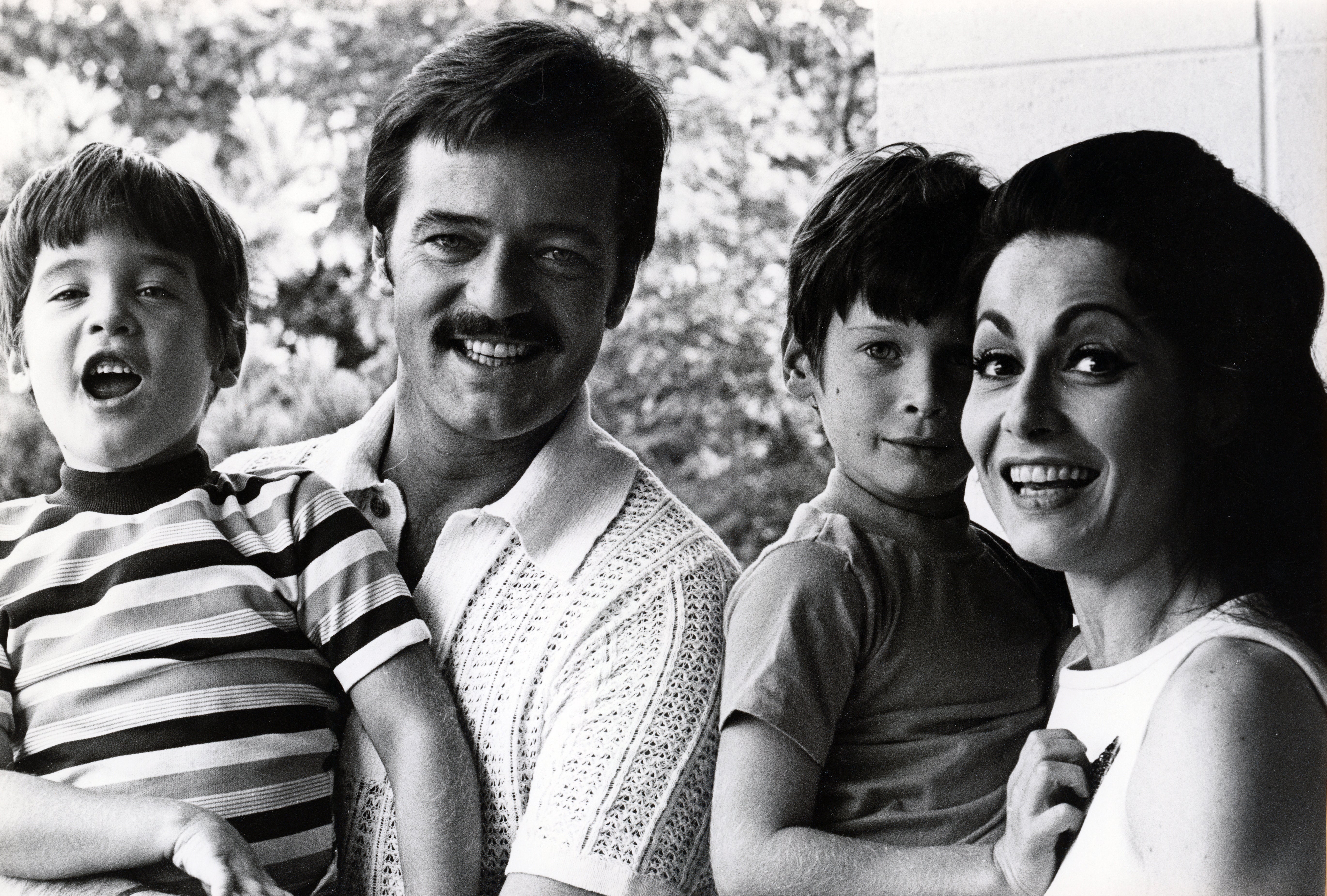 1970 | ROBERT GOULET AND CAROL LAWRENCE POSE FOR A FAMILY PORTRAIT WITH THEIR SONS AFTER A REHEARSAL
