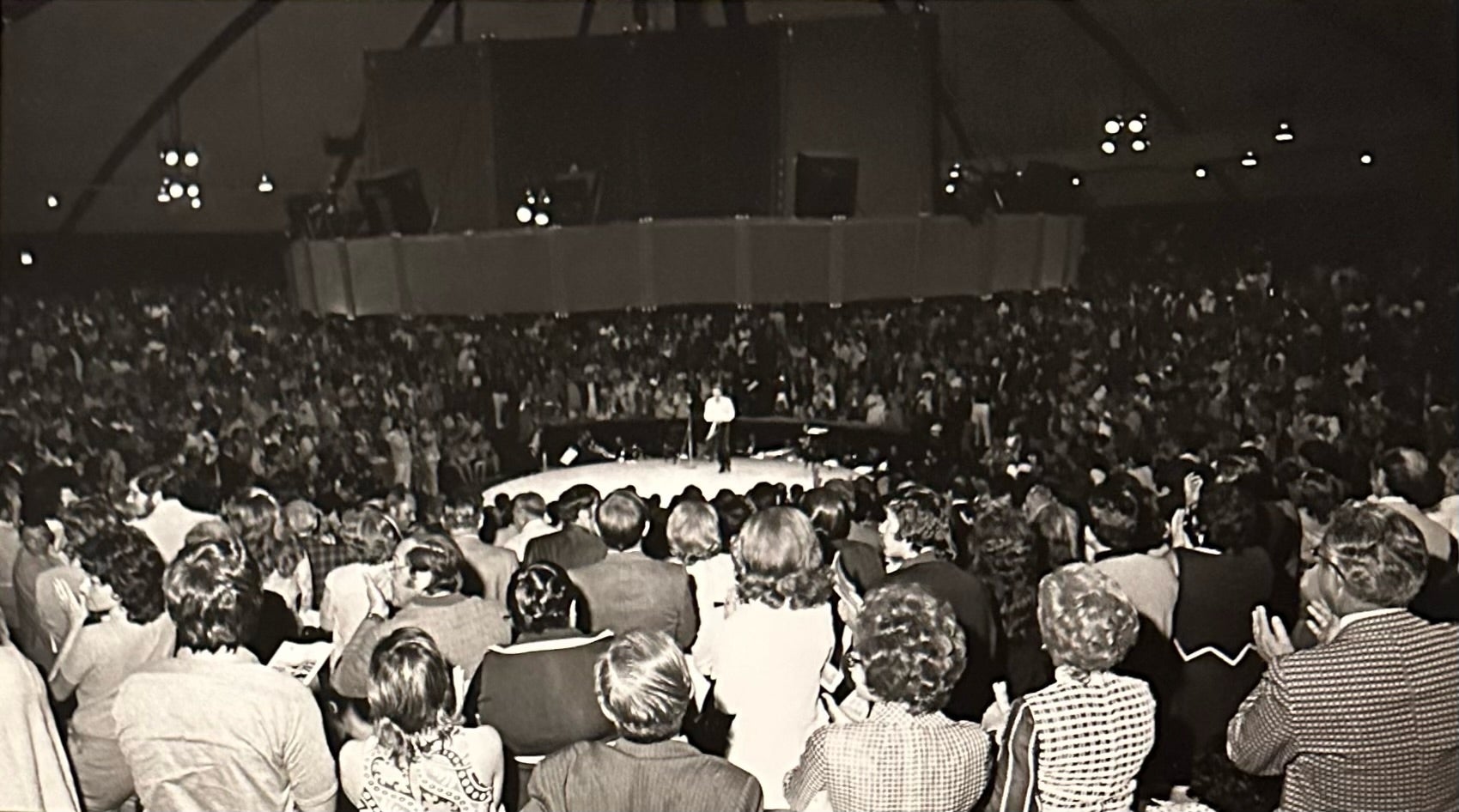 1972 | SERGIO FRANCHI ACKNOWLEDGES THE PLAUDITS OF THE AUDIENCE THE STANDING OVATION IS TYPICAL OF THAT RECEIVED BY MANY STARS AT THE MUSIC FAIR