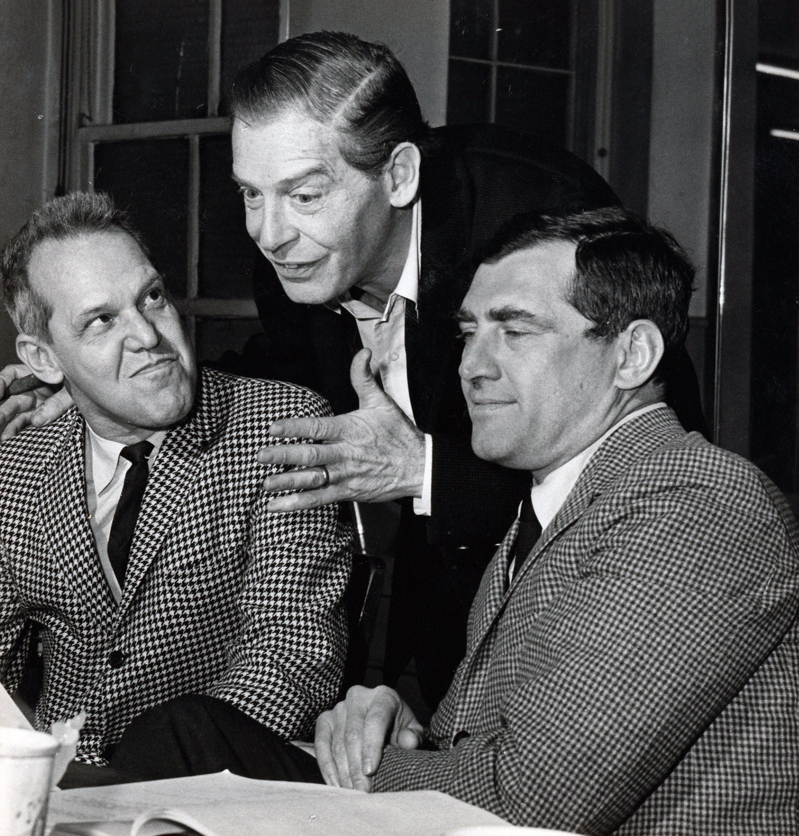 1963 | MILTON BERLE CONFERS WITH DIRECTOR DICK BARSTOW AND PRODUCER LEE GUBER ON "TOP BANANA"